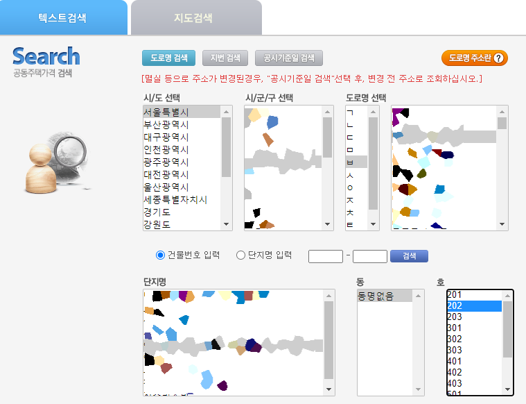 이때 공동주택 가격 열람을 하고 싶다면, 지역의 아파트나 연립의 위치를 알아야 합니다.