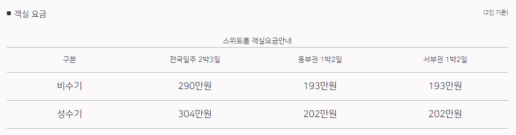 계절별로 또는 기간별로 3가지 여행 상품이 운영되고 있는데요.