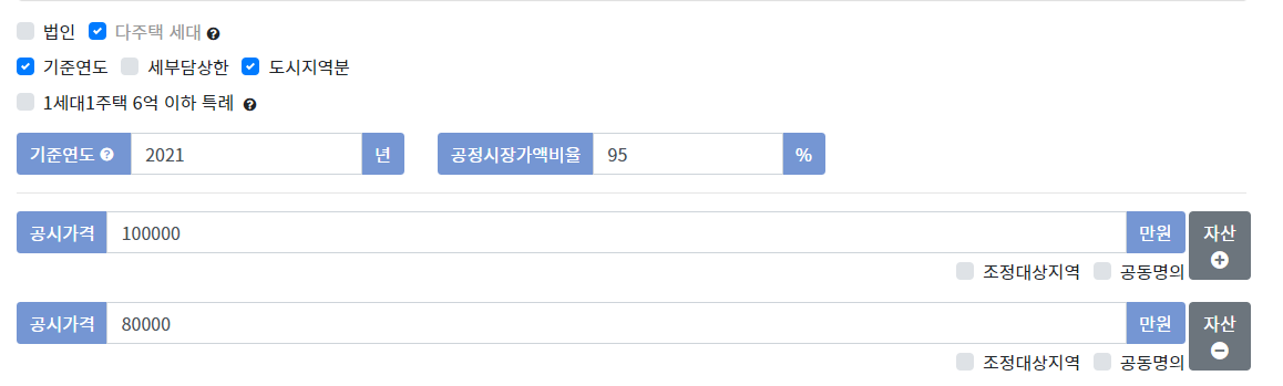다주택 세대라면 체크 후 자산을 추가해서 계산하면 되는데요.