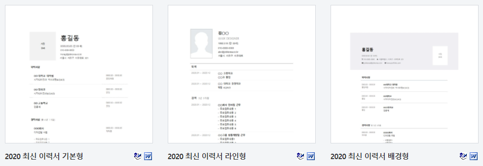거기서 마음에 드는 기본 이력서 양식을 원하는 확장자(HWP, DOC 등등)에 맞춰서 다운 받으면 됩니다.