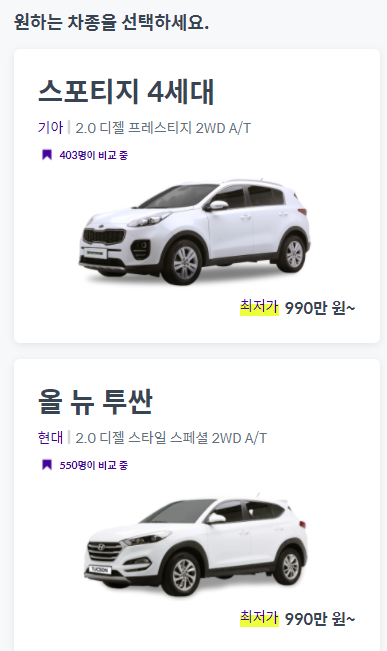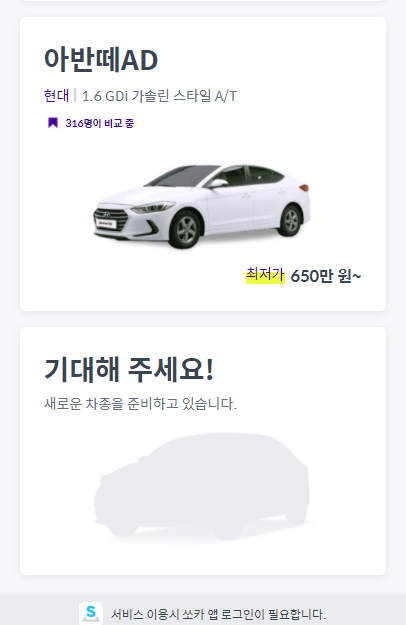 현대 인증 중고차, kcar 인증 중고차 또는 쏘카의 캐스팅 같은 것이 그렇습니다.