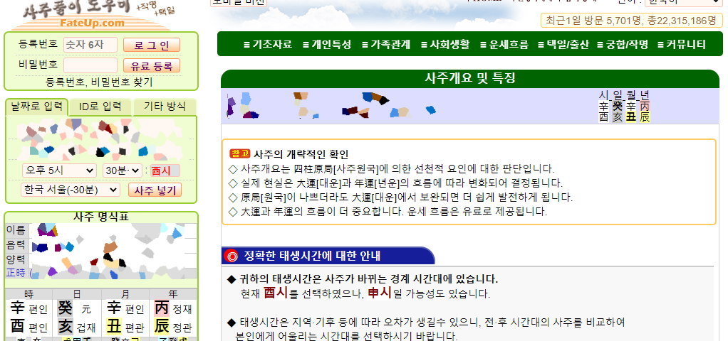 그런데 사주팔자 보시려면 내가 언제 태어났는지 날과 시를 알아야 합니다.