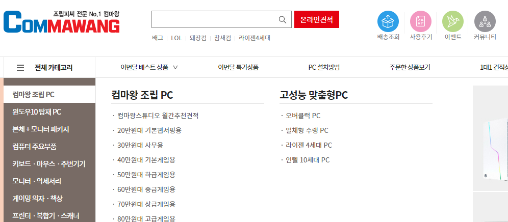 또는 조립 PC 견적 사이트에서 컴퓨터 조립 견적 후 상담을 해주기도 합니다.