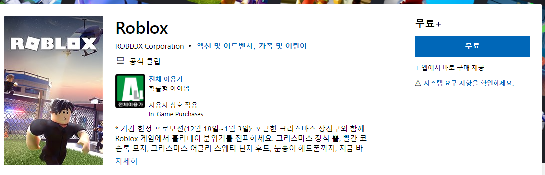 그리고 바로 로블록스 다운로드 하는 방법은 스토어에서 받는 것입니다.