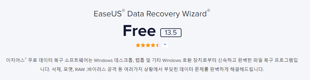 복구 프로극램이 무료로 제공이 되지만, 용량에 제한이 있습니다.