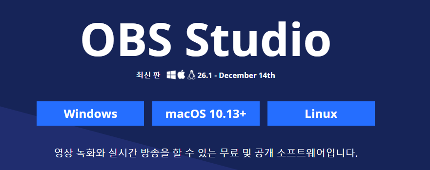 OBS는 Open Broadcaster Software의 약자로 영상 녹화는 물론 실시간 방송도 가능한 프로그램입니다.