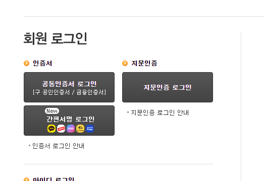 예전에는 접속하는 컴퓨터나 스마트폰에 공인인증서가 있어야 로그인이 가능했습니다.
