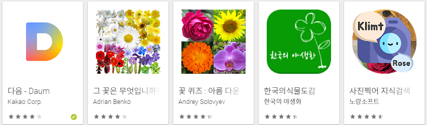 그 외에는 다음앱의 꽃이름 찾기나 네이버앱의 그린닷의 스마트렌즈가 그 역할을 수행하고 있습니다.