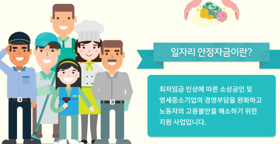 일자리 안정자금이란 매출은 줄어들지만 월급을 비롯한 비용은 계속 나가야하고, 최저 임금은 미미하지만 계속 오르고 있고 이에 사업주의 부담이 커지는 것을 일부 정부가 지급을 해주는 제도라고 할 수 있습니다.