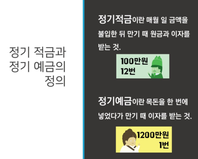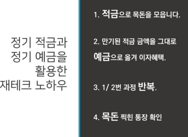 그래서 적금은 목돈을 만들기에 적합하고, 정기예금은 목돈을 굴리기에 적합합니다.