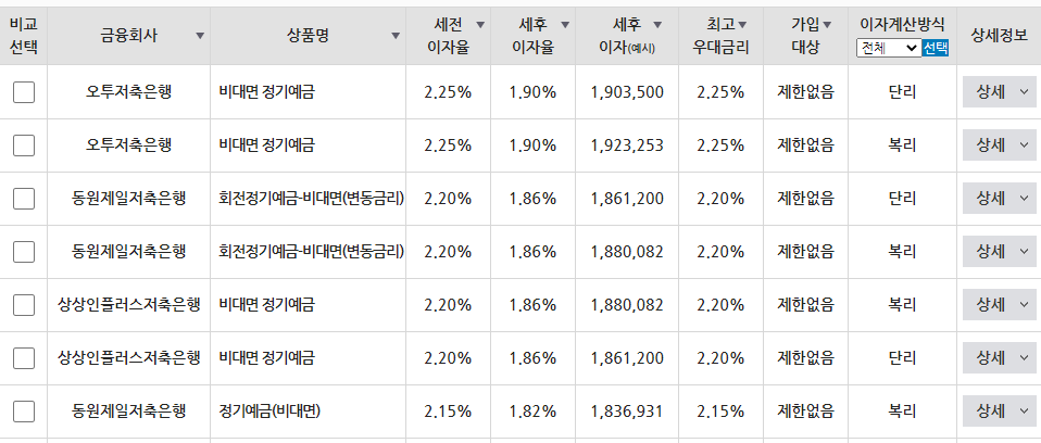 - 예치한 금액이 모두 동일한 이자율에 적용을 받는다.