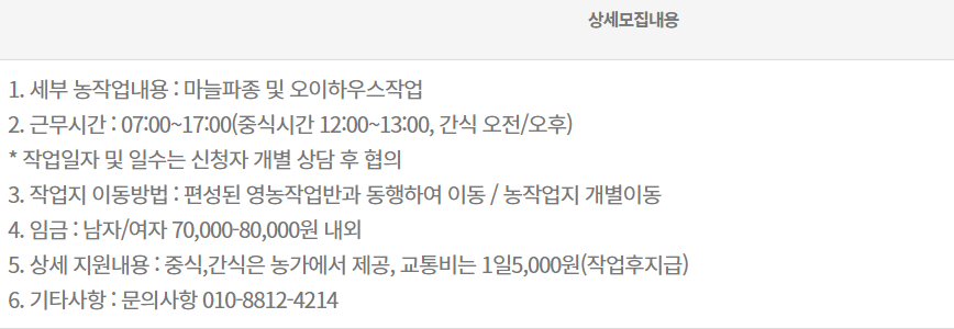 지자체 농촌인력중개센터의 경우 각 지자체마다 운영하는 인력중개로 구직을 원하는 지자체에 연락을 해봐야 알 수 있다는 단점이 있습니다.