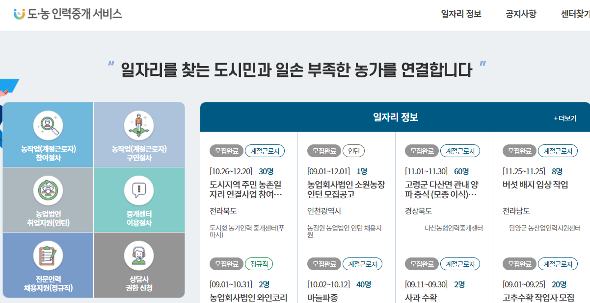그래서 가장 많이 사용하는 곳이 도농인력중개서비스 사이트입니다.